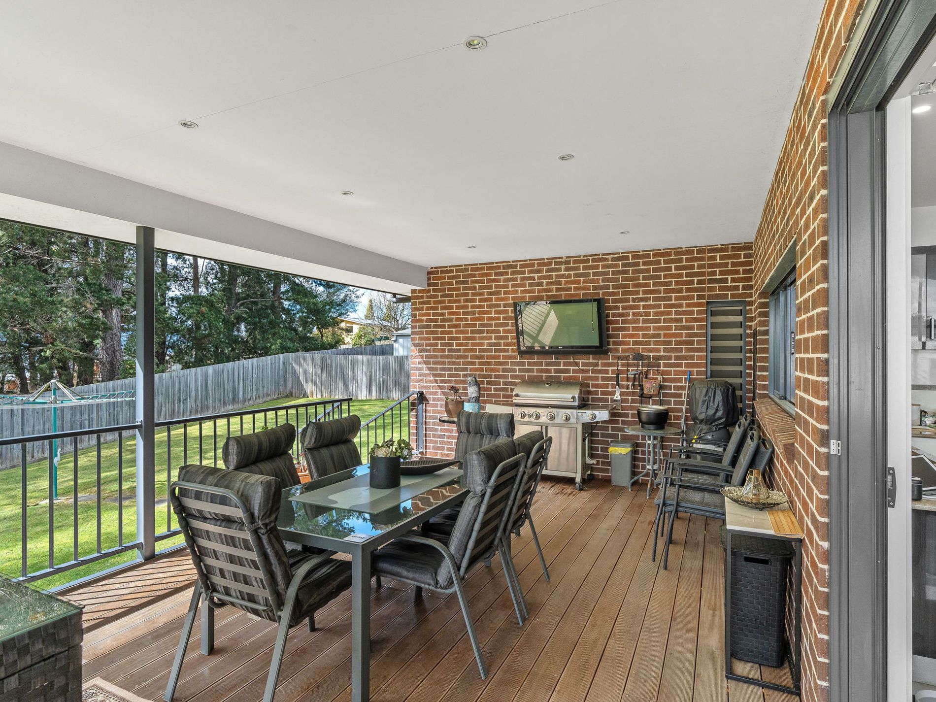 The master suite is a private retreat with a walk-in wardrobe and ensuite, and the remaining bedrooms are generously proportioned. Step outside to an undercover entertaining deck that overlooks the large backyard and peaceful tree-lined outlook, ideal for outdoor dining and relaxation. A double garage with internal access adds convenience, and the home's immaculate presentation reflects careful maintenance and pride of ownership.